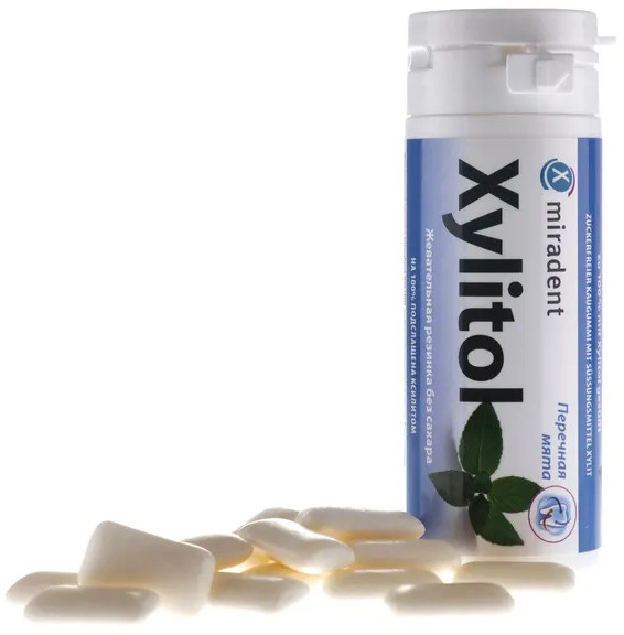 Жевательная резинка Miradent Xylitol Chewing Gum не содержит глютен, ГМО, лактозу, фруктозу, аспартам (Е951), ацесульфам калия (Е950), ацикламат натрия (Е952) и рекомендована и взрослым, и детям. Теперь Вы можете удалять налет и противостоять кариесу, получая удовольствие от различных приятных вкусов.