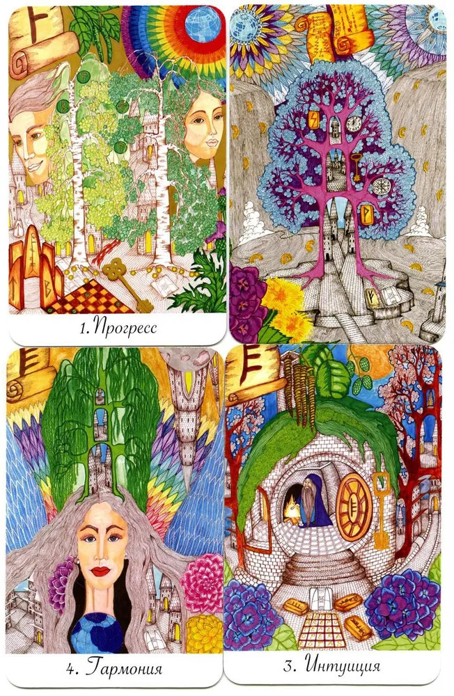 В ваших руках — Оракул, который можно считать артефактом, инструментом, который направит мастера в нужном направлении. Это еще одна работа Надежды Безпаловой, которая позволит управлять реальностью и заглянуть в прошлое и будущее. Кроме прекрасного художественного оформления, колода имеет огромный магический потенциал, карты насыщены информацией, что позволит мастеру легко использовать все возможности, которые открываются во время работы с колодой. Почему Оракул двух миров, а не как-то иначе? Потому что Огам позволяет видеть реальность, а Глифы — это мир, связанный с царством мертвых. Интересно то, что автор смогла воссоединить их и создать мощный инструмент, который будет незаменим в руках опытного мастера. |