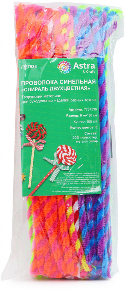 💳 Оплатить за товар можно при получении 🇰🇿 Есть бесплатная доставка по Казахстану от 1 дня 🎁 Копите бонусы с каждой покупки Проволока пушистой двухцветной оплеткой из полиэстера (синельная проволока) от Astra&Craft — идеальный материал для детского творчества. Работать с ней очень просто. Проволоку синель используют в сочетании с помпонами, пряжей насыщенных цветов, фетром, пуговицами. |