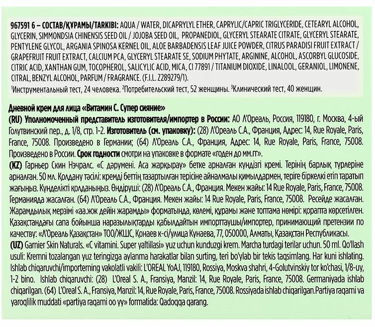 Garnier Крем для лица дневной с витамином С «Супер сияние»