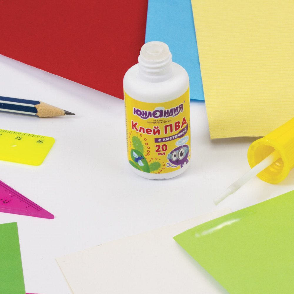 Клей ПВА предназначен для склеивания изделий из бумаги, картона, а также подходит для ткани и фотографий. Идеальный выбор для детского творчества.