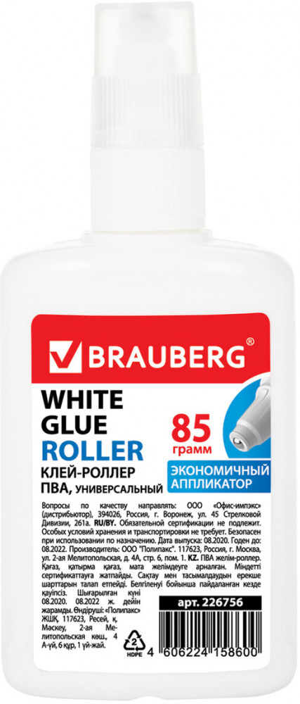 Ускорьте и упростите создание своих творческих работ с клеем-роллером ПВА BRAUBERG! Надежное и быстрое склеивание различных материалов. Закажите клей-роллер ПВА прямо сейчас для повышения своей производительности.