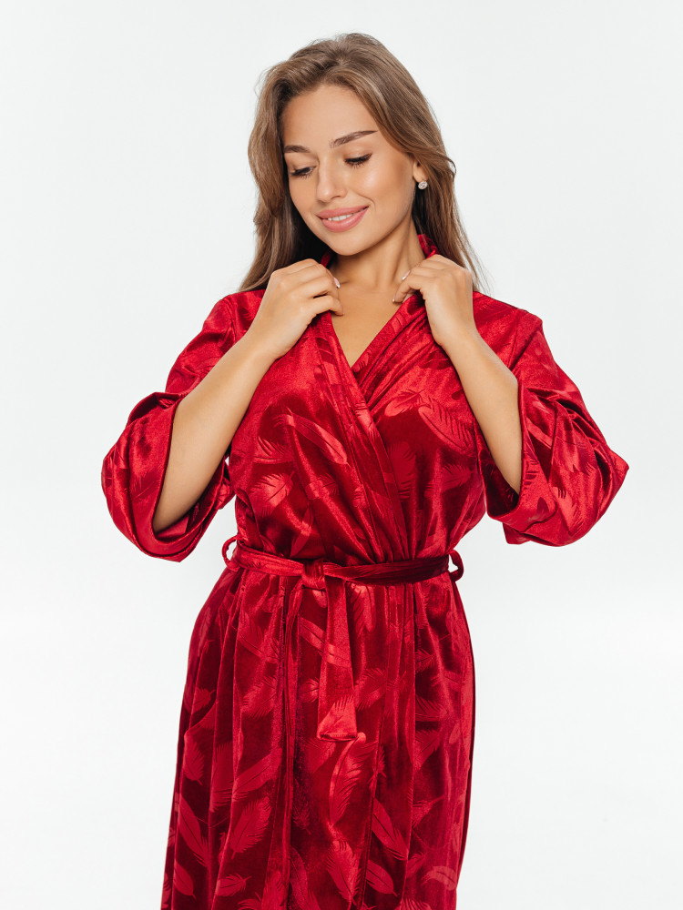Шикарный нарядный халат.Качество супер.На свой 52р взяла 56р., потому как маломерит и халат должен быть посвободней.Советую .
