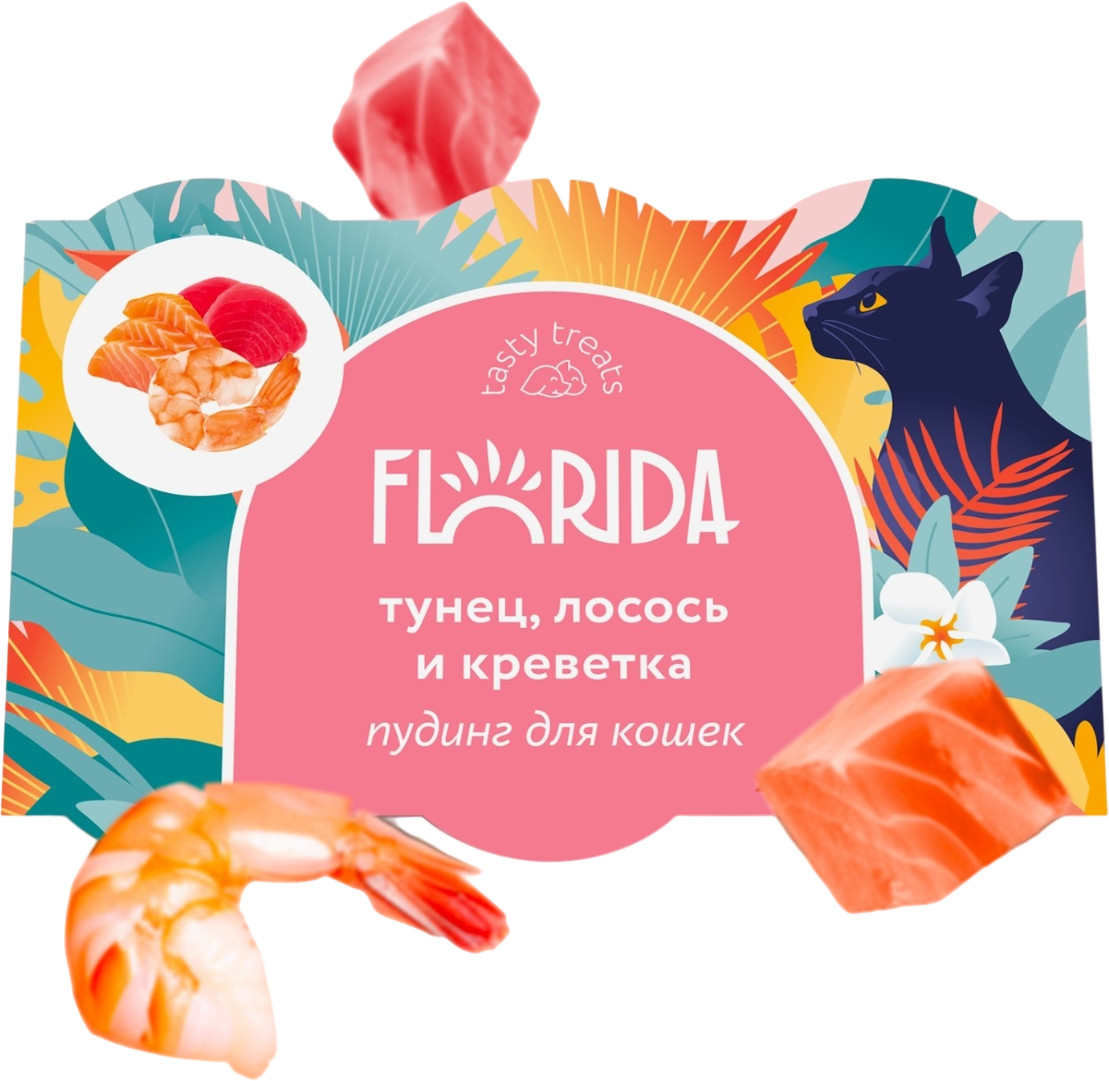 Florida Пудинг для кошек с тунцом, лососем и креветкой