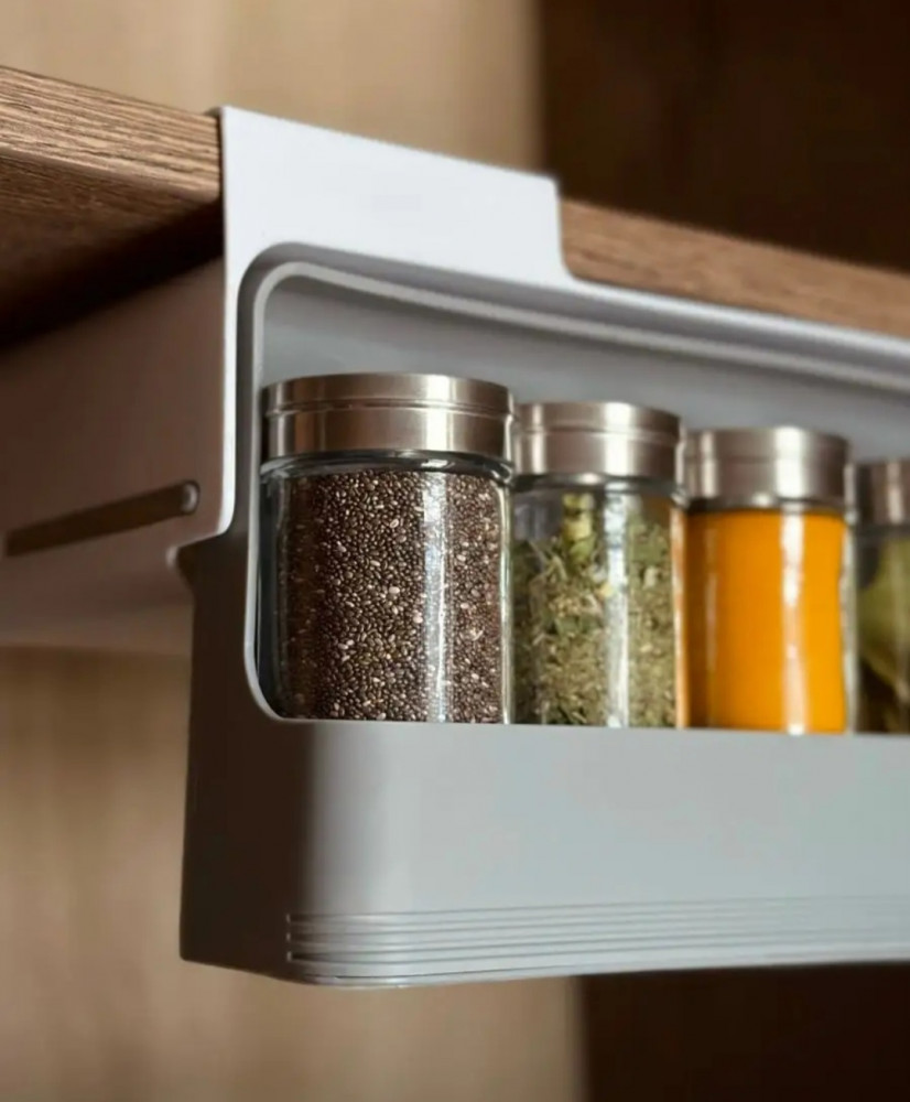 Идея хорошая, экономит место и специи всегда под рукой. Но липучка не держит даже с пустыми банками.