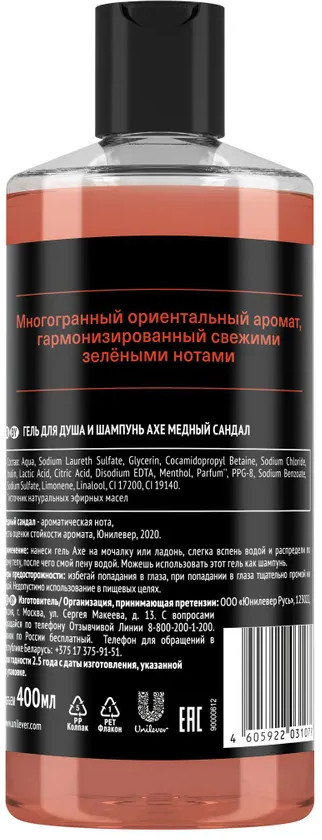 AXE Шампунь и гель для душа 2 в 1 «Медный сандал»