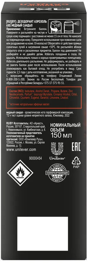 AXE Дезодорант-спрей для мужчин парфюмированный «Медный сандал»