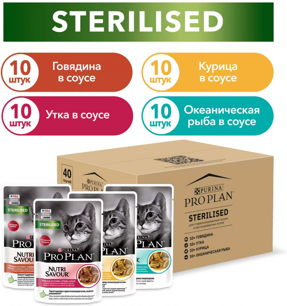 Purina Набор паучей для кастрированных кошек «Sterilised»
