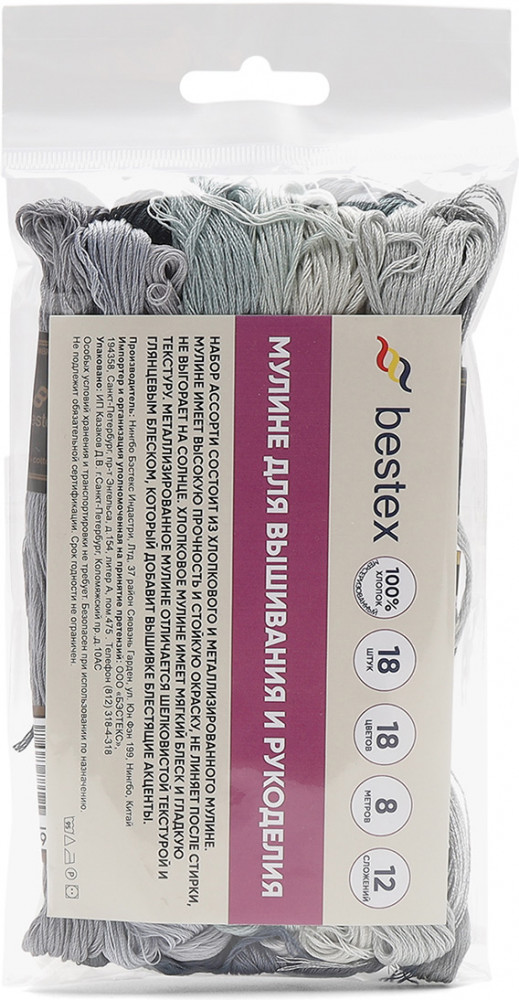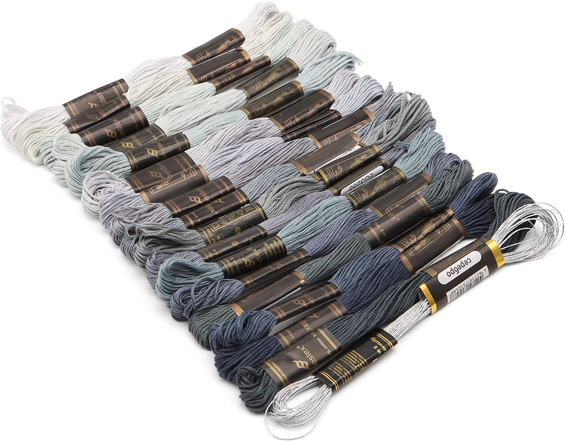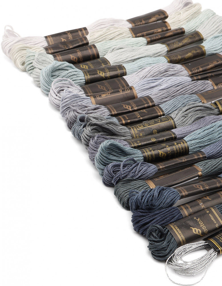 Большой набор мулине Холодное серебро от Bestex подойдет как начинающим, так и опытным мастерицам. Нитки изготовлены из 100% мерсеризованного хлопка, имеют мягкий блеск. Тонкие, износостойкие, равномерные по всей длине. При вышивании образуются аккуратные стежки. Используйте эти мулине, чтобы, вышивать крестом, гладью и другими техниками.