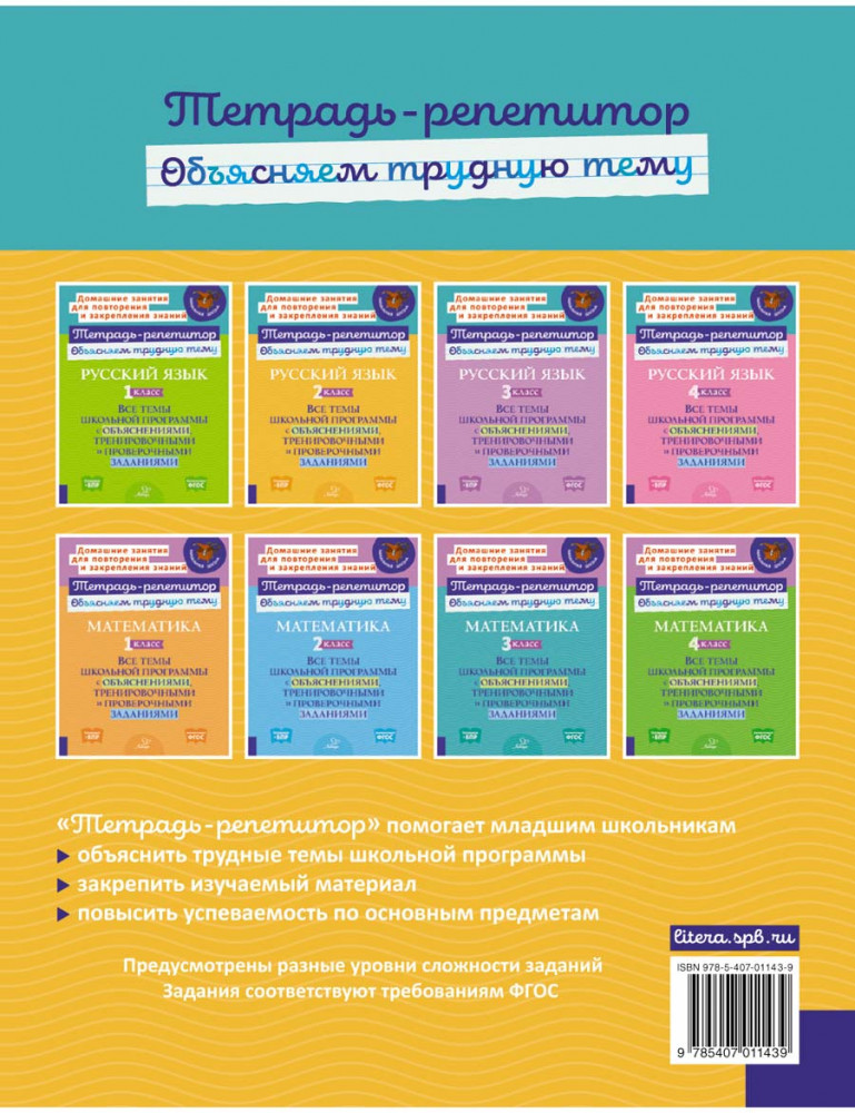 💳 Оплатить за товар можно при получении 🇰🇿 Есть бесплатная доставка по Казахстану от 1 дня 🎁 Копите бонусы с каждой покупки Серия: Тетрадь-репетитор В книге представлены с простыми объяснениями и наглядными примерами самые важные и сложные темы учебной программы для 2 класса. В качестве тренировочных упражнений к каждой теме даны задания для самостоятельного выполнения и ответы к ним. Книга прекрасно подойдёт для дополнительных домашних занятий со второклассниками. Она адресована, в первую очередь, заботливым родителям первоклассников — с её помощью легко организовать занятие с ребёнком, грамотно объяснить ему учебный материал и формировать необходимые навыки. |
