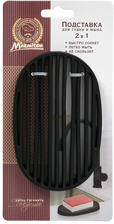 Marmiton Подставка для губки и мылаВ данный момент этот товар отсутствует в продаже. Возможно, у нас найдется аналогичный или похожий товар здесь. Серия: Мытье и сушка посуды Щетки, губки, стальные губки, спонжи для раковины, тряпочки и многое другое — столько всего нужно для поддержания посуды и кастрюль в чистоте, но куда это складывать?! Подставка для губки и мыла будет идеально гармонировать с любым интерьером вашей кухни. Выполнена из термопластичной резины, которая отличается долговечностью. Изделие не впитывает запахи, не содержит вредных веществ, абсолютно безопасно в применении. |