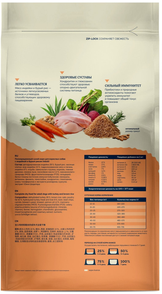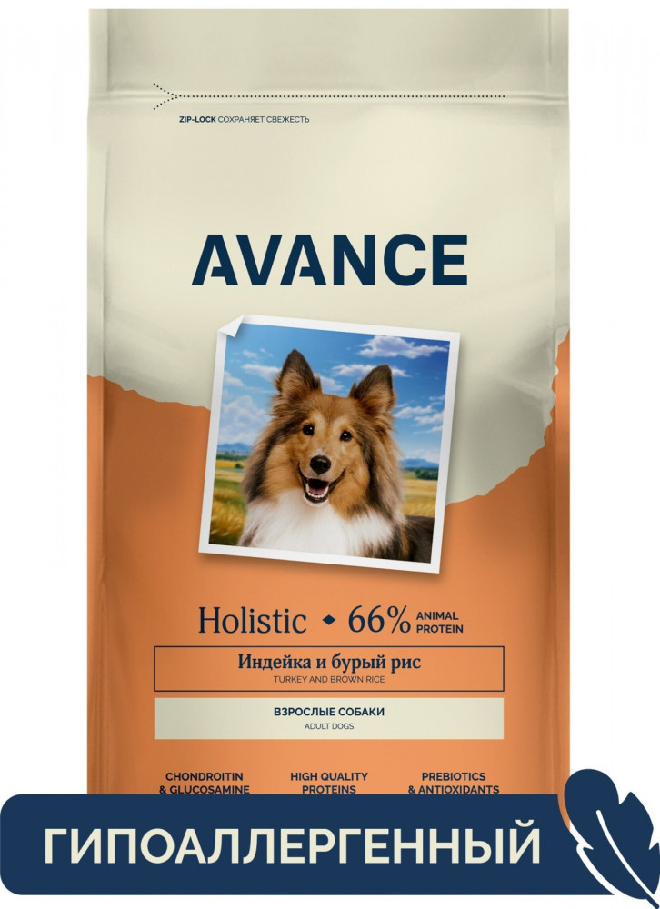 Avance Корм сухой для взрослых собак с индейкой и бурым рисом