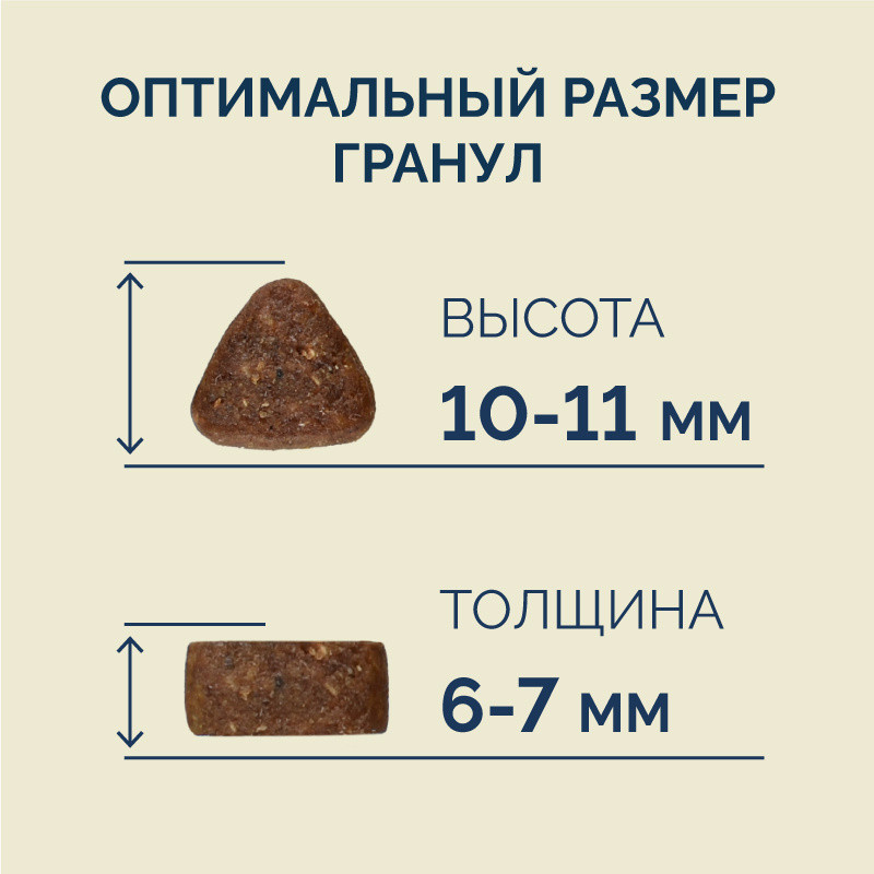 Мелковаты гранулы для средних собак. Практически не набухает в воде (бывает необходимость размягчения корма)