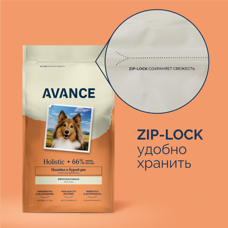 Avance Корм сухой для взрослых собак с индейкой и бурым рисом