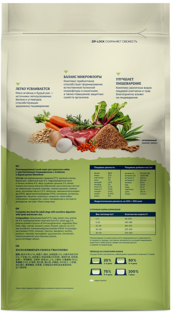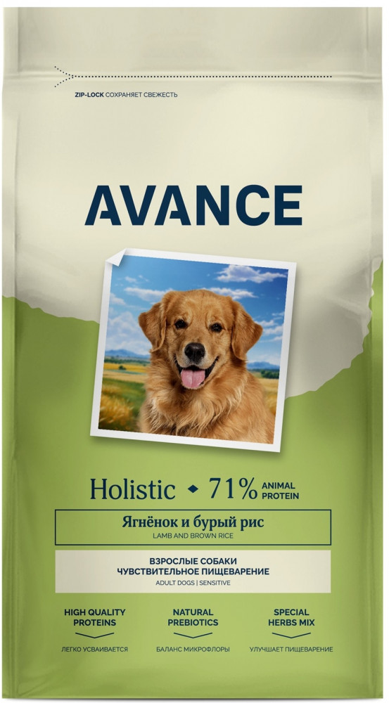 Avance Корм сухой для взрослых собак с чувствительным пищеварением с ягненком и бурым рисом