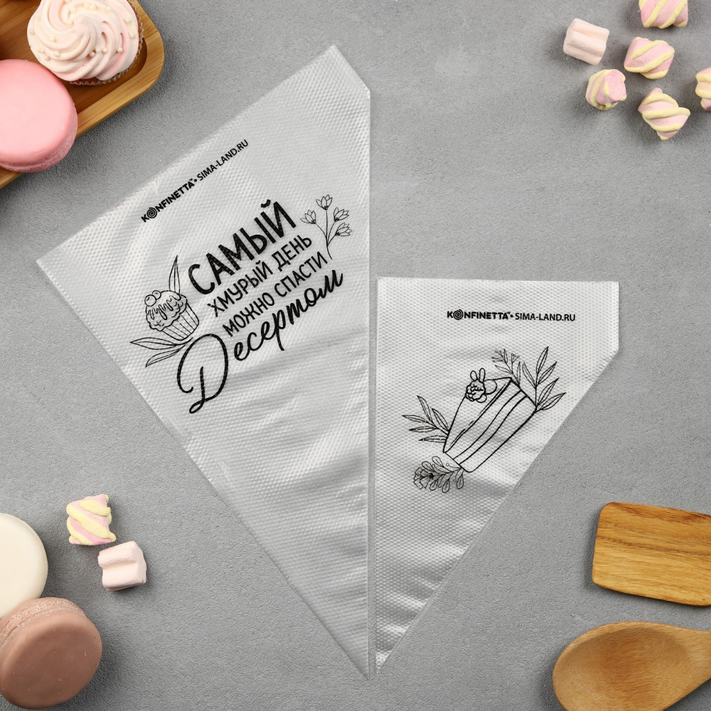 Konfinetta Набор кондитерских мешков «Тортик»В данный момент этот товар отсутствует в продаже. Возможно, у нас найдется аналогичный или похожий товар здесь. Кондитерский мешок — превосходный инструмент, который облегчает и ускоряет процесс выпечки печенья, бисквитов, пряников, идеален для украшения десертов и пирогов сливками или заварным кремом, для заполнения пончиков джемом, а также для украшения бутербродов, тостов и канапе паштетом, маслом, плавленым сыром. Чтобы использовать кондитерский мешок без насадок, достаточно укоротить его уголок. |