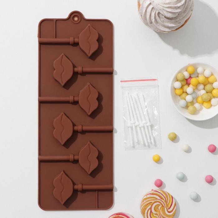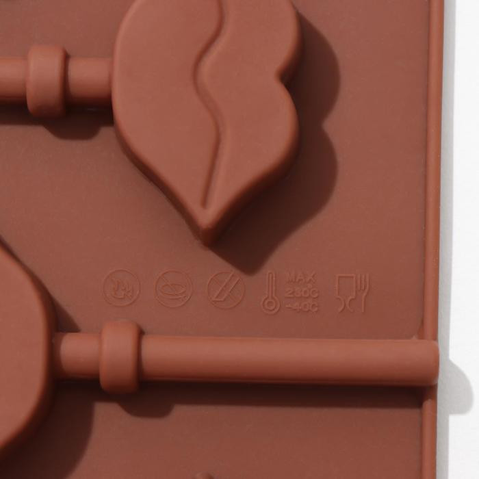 Доляна Форма силиконовая для для леденцов, с палочками «Поцелуй»-40% +7