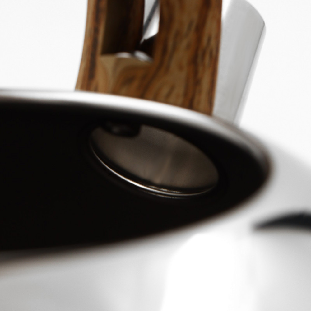 Ручка soft-touch. Толщина стали — 0,56 мм. Рабочий объём чайника — 2 л. Рабочим считается объём воды до носика, при котором жидкость остаётся внутри чайника, в том числе при кипении. Максимальный объём — номинальный объём до крышки. Такое количество воды кипятить не рекомендуется.
