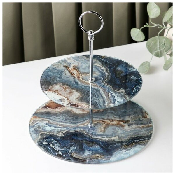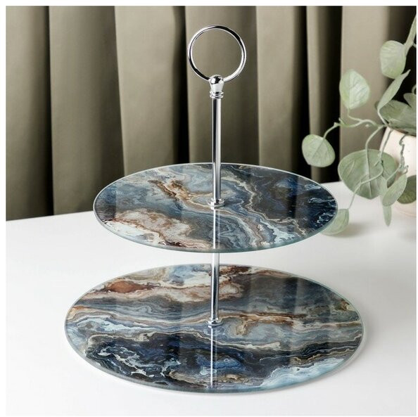 Доляна Фруктовница двухъярусная «Мрамор оникс»-25% +196
