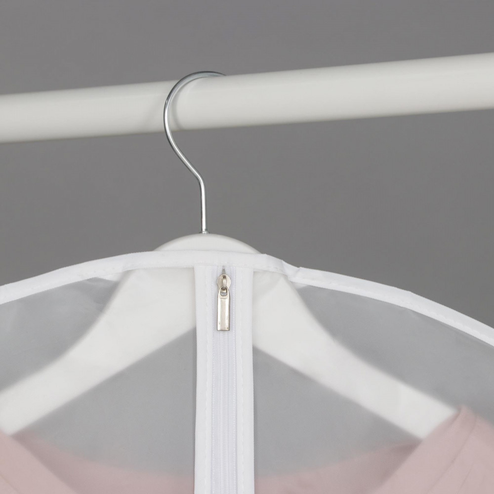 • чехол надёжно защищает одежду от пыли и грязи, от насекомых, механических повреждений или от возможного выцветания;