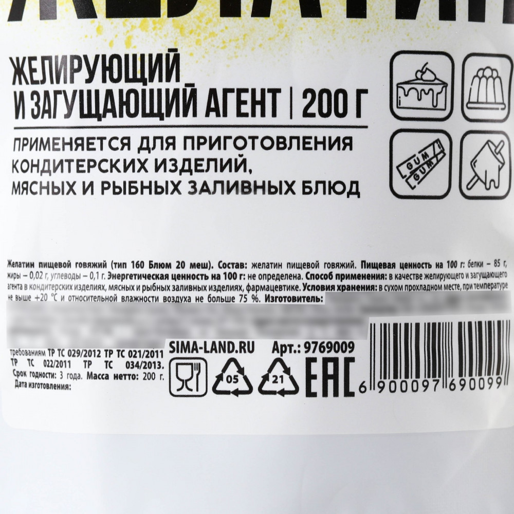 Konfinetta Желатин пищевойВ данный момент этот товар отсутствует в продаже. Возможно, у нас найдется аналогичный или похожий товар здесь. Желатин применяют для приготовления желе, кремов, тортов, овощных и мясных блюд, различных закусок и студней. Рекомендации по применению: 10 г желатина (1 столовая ложка) залить 100 мл холодной кипяченой воды, выдержать 20-30 минут для набухания, добавить 200 мл горячей (80 — 90 °С) жидкости (сироп, бульон, молоко, вода и пр.), хорошо размешать до полного растворения, при необходимости процедить. |