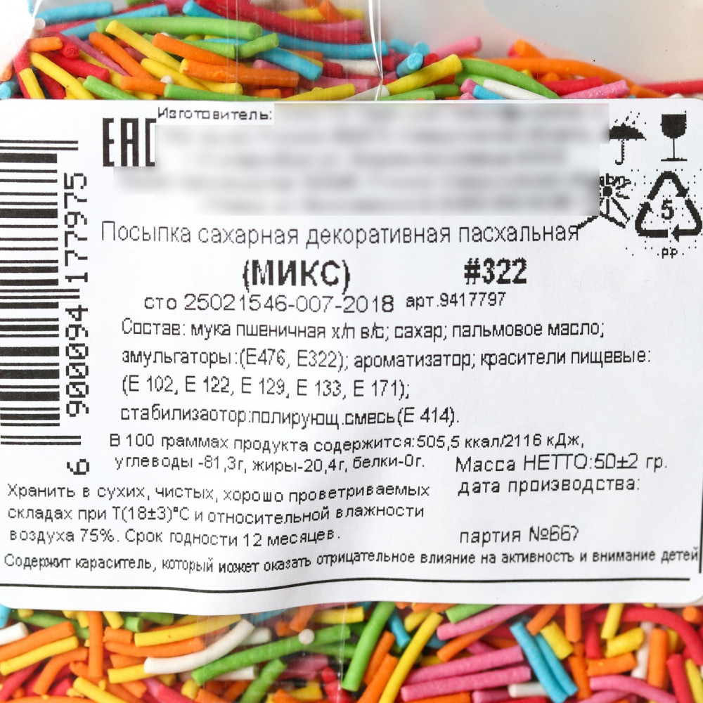 Отзывы «Посыпка-вермишель кондитерская «Светлой Пасхи», красный, желтый, голубой, розовый, зелёный»