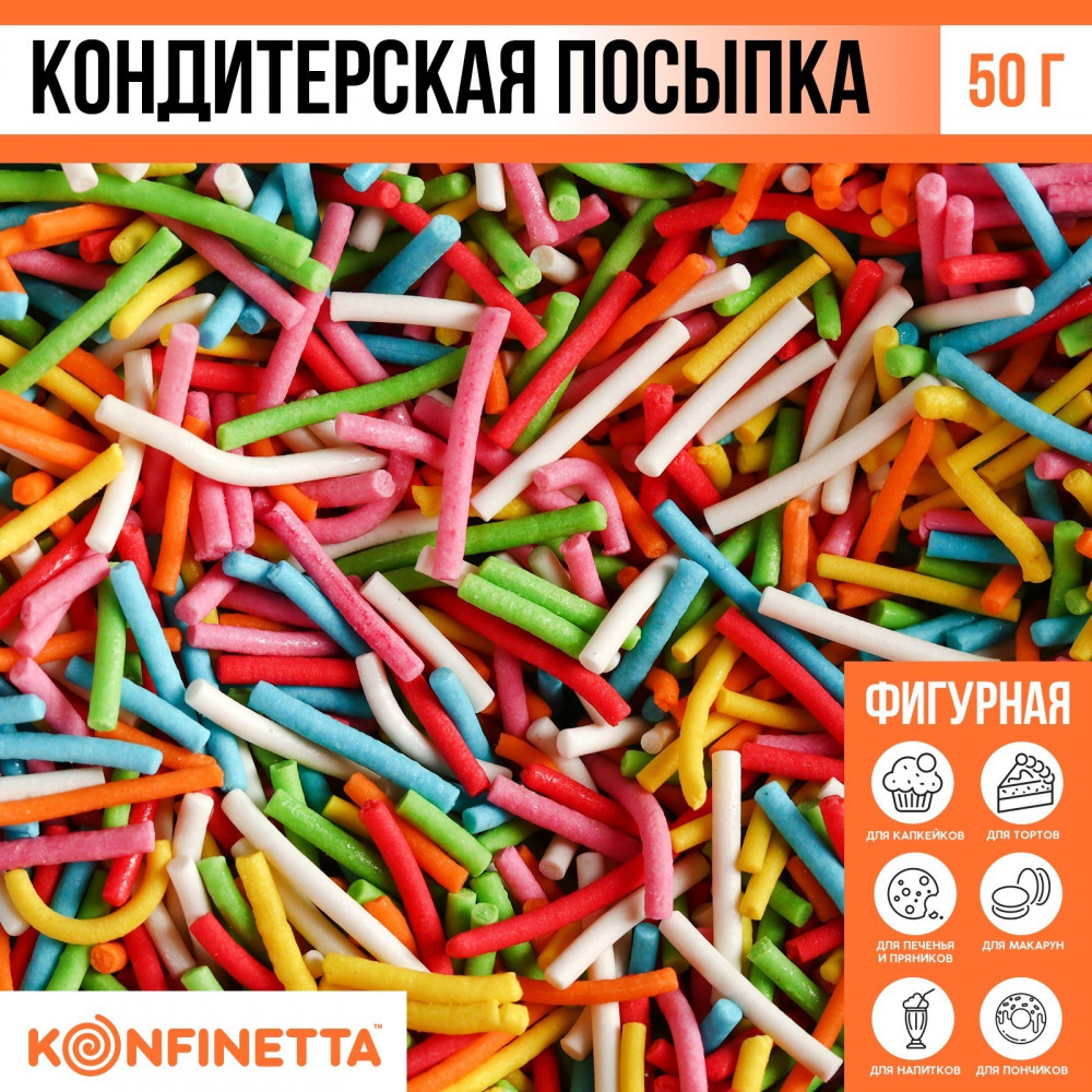 Konfinetta Посыпка-вермишель кондитерская «Светлой Пасхи», красный, желтый, голубой, розовый, зелёный