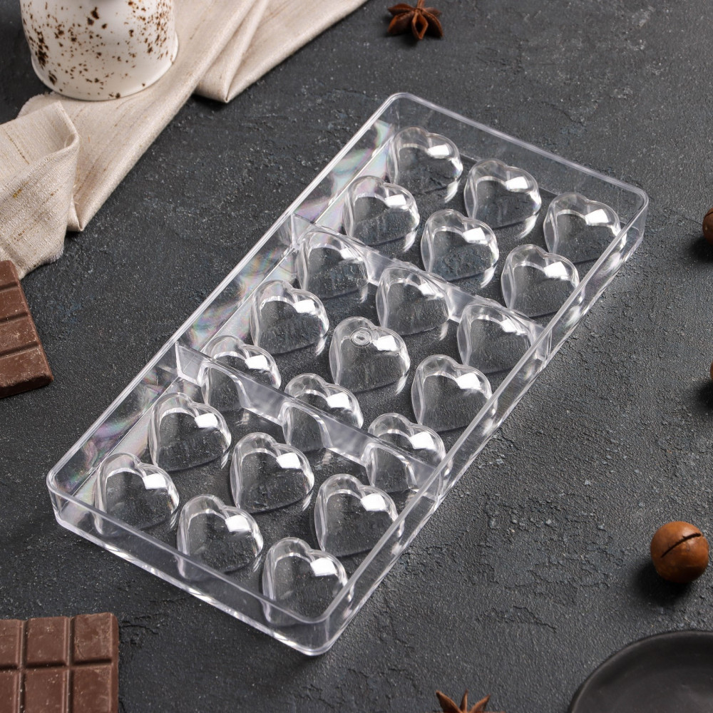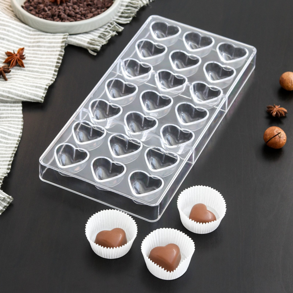 Если спросить кондитера, какие самые вкусные конфеты, то он без сомнения ответит, что домашние ручной работы. Приготовить любимый десерт гораздо проще, чем кажется. Наполните пластиковую ёмкость расплавленным шоколадом и поместите в морозильную камеру. Фигурки идеально подойдут для украшения торта. Дети будут восторге, а вы уверены в составе сладостей. Создавайте неповторимые кулинарные шедевры! Состоит из двадцати одной ячейки, каждая ячейка размером 3 × 2 см.