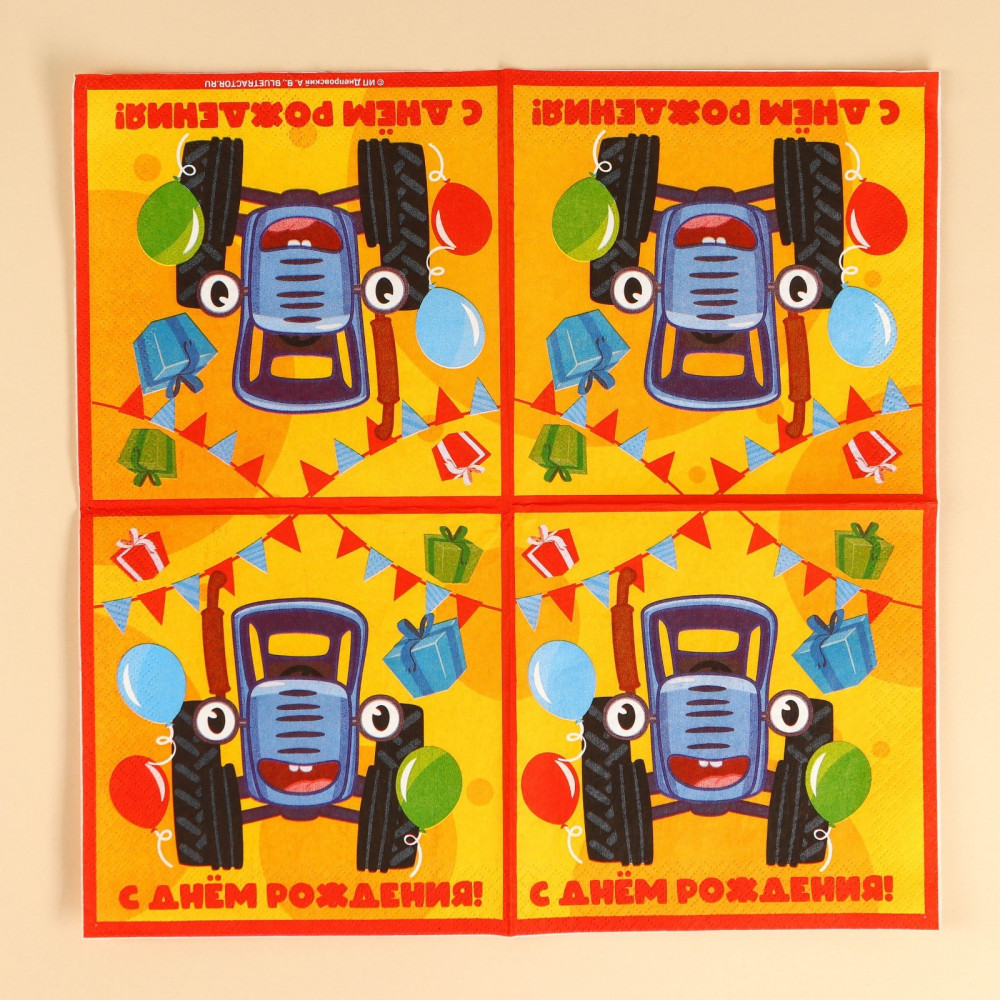 Салфетки бумажные «С днём рождения»В данный момент этот товар отсутствует в продаже. Возможно, у нас найдется аналогичный или похожий товар здесь. Эти трёхслойные бумажные салфетки с изображением синего трактора и надписью «С днём рождения» станут прекрасным дополнением к вашему праздничному столу или вечеринке в стиле сельской тематики. Упаковка содержит 20 штук, обеспечивая достаточное количество для использования во время праздника. Яркий и качественный дизайн сделает ваше мероприятие ещё более запоминающимся и радостным. |