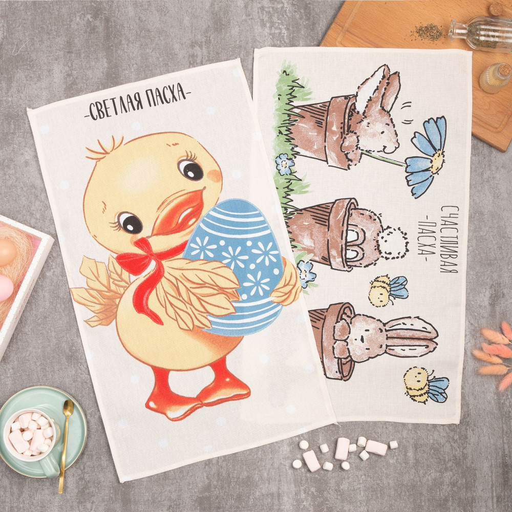Доляна Набор полотенец кухонный «Пасхальный цыплёнок»-40% +39 качество ткани рисунок удовлетворенность kk?