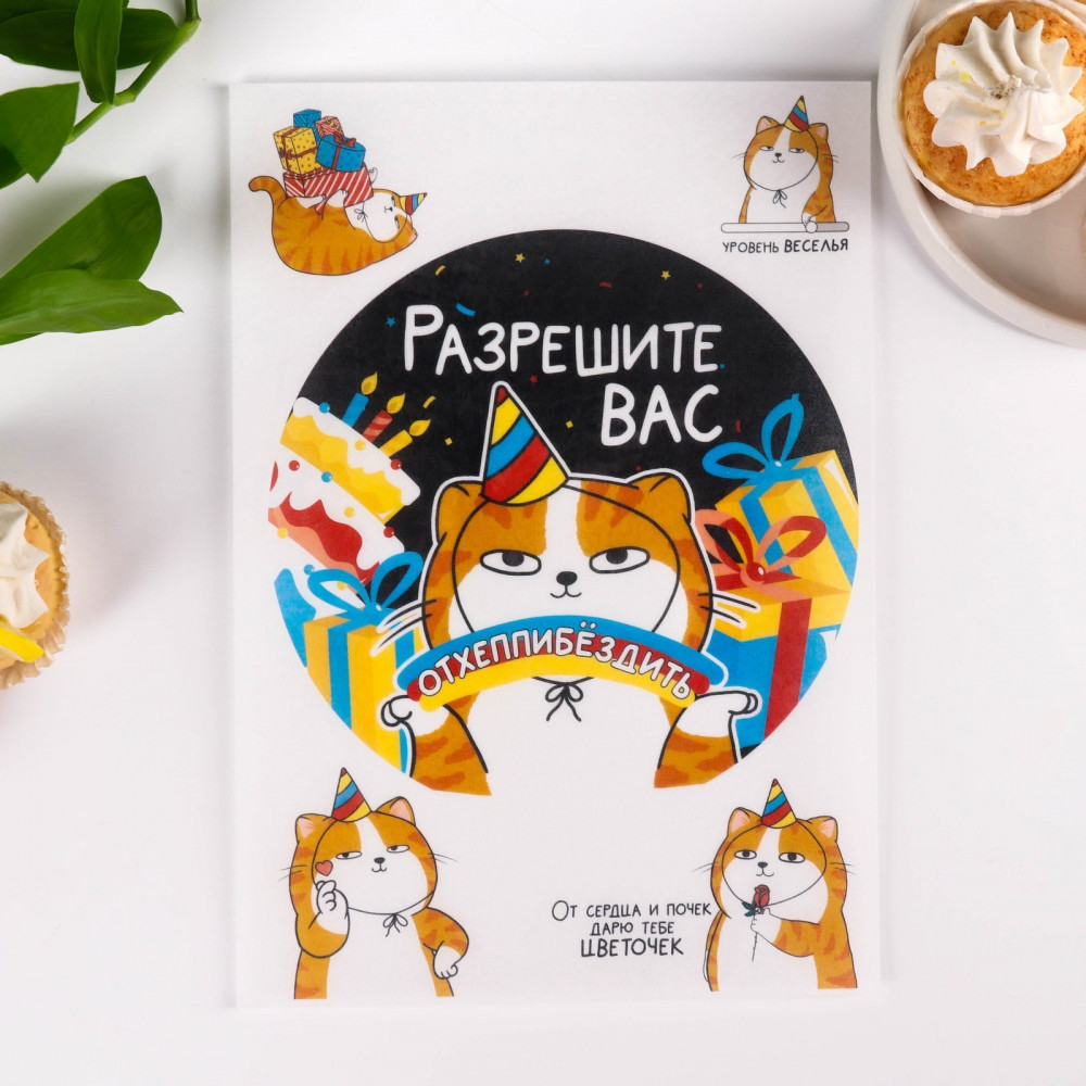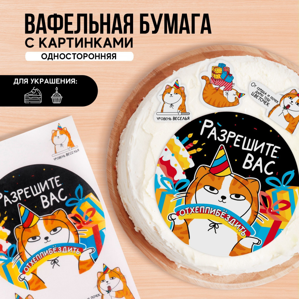 Konfinetta Бумага вафельная съедобная «Разрешите отхепибёздить»В данный момент этот товар отсутствует в продаже. Возможно, у нас найдется аналогичный или похожий товар здесь. Серия: С днем рождения Съедобные цветные картинки на вафельной бумаге «Разрешите отхепибёздить», размером 1 лист А4, представляют собой идеальное украшение для кондитерских изделий, посвящённых праздничным дням. Эти картинки могут включать в себя милые и нежные изображения, связанные с младенцами, такие как плюшевые мишки, колыбели, маленькие ножки или ручки, а также надписи. |