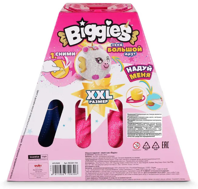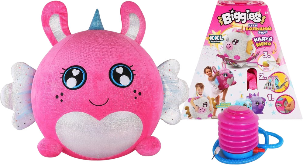 💳 Оплатить за товар можно при получении 🇰🇿 Есть бесплатная доставка по Казахстану от 1 дня 🎁 Копите бонусы с каждой покупки Biggies — твой большой друг: не просто мягкая игрушка, а супербольшой растущий плюш-шар с элементами распаковки и WOW-эффекта! Каждый герой спрятан в пирамидке, чтобы узнать, кто внутри, нужно надуть героя насосом в наборе, пока он не выпрыгнет из своей упаковки! |