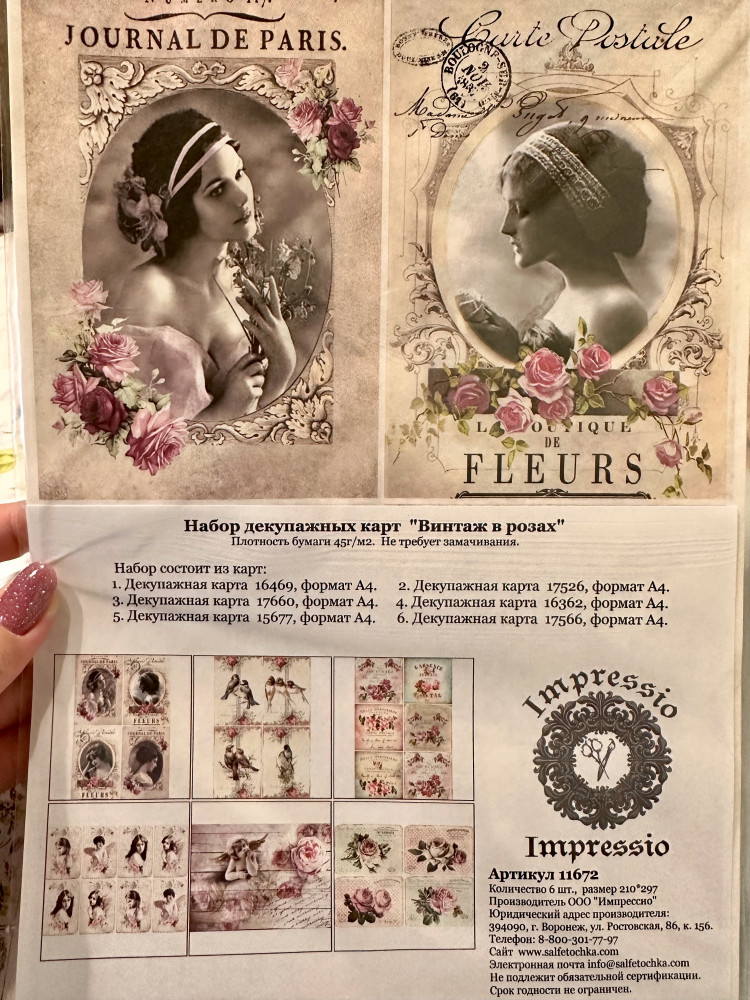 Набор карт декупажных «Винтаж в розах»-25% +36 яркие цвета