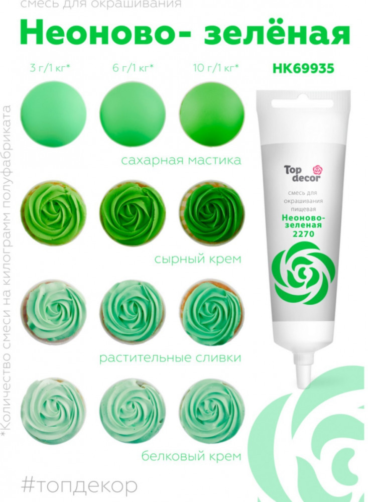 Топ декор Краситель пищевой гелевый, неоново-зелёный