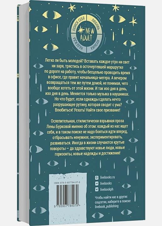 💳 Оплатить за товар можно при получении 🇰🇿 Есть бесплатная доставка по Казахстану от 1 дня 🎁 Копите бонусы с каждой покупки Легко ли быть молодой? Вставать каждое утро ни свет ни заря, трястись в осточертевшей маршрутке по дороге на работу, чтобы бесцельно проводить время в офисе, где правит начальница-мегера. А вечером возвращаться тем же путем домой, не понимая, чего вообще хотеть от этой жизни. И так изо дня в день, изо дня в день. Меняется только музыка в наушниках. Но что будет, если однажды сделать нечто разрушающее рутину, которая сводит с ума? Влюбиться! Уехать! Найти свое призвание! |