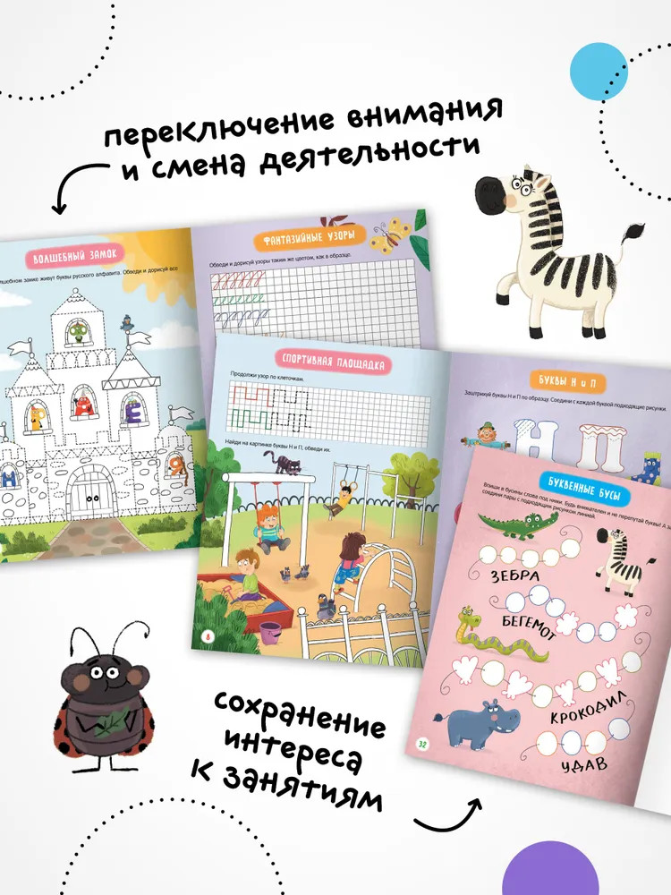 💳 Оплатить за товар можно при получении 🇰🇿 Есть бесплатная доставка по Казахстану от 1 дня 🎁 Копите бонусы с каждой покупки Книга «Прописи. Сложность 4» серии «Прописи для малышей» радикально изменит ваше представление о прописях! Здесь нет скучных черно-белых строчек с однообразными палочками и закорючками, зато есть по-настоящему волшебные иллюстрации талантливой художницы Аурики Сафиулиной и разноплановые задания на развитие мелкой моторики: обведение по контуру, рисование по клеточкам, распутывание дорожек, раскрашивание по образцу, рисование узоров и т. д. Эмоциональные харизматичные герои сделают занятия интересными для ребенка, а тренировка руки превратится в увлекательное приключение. |