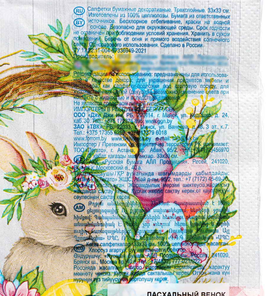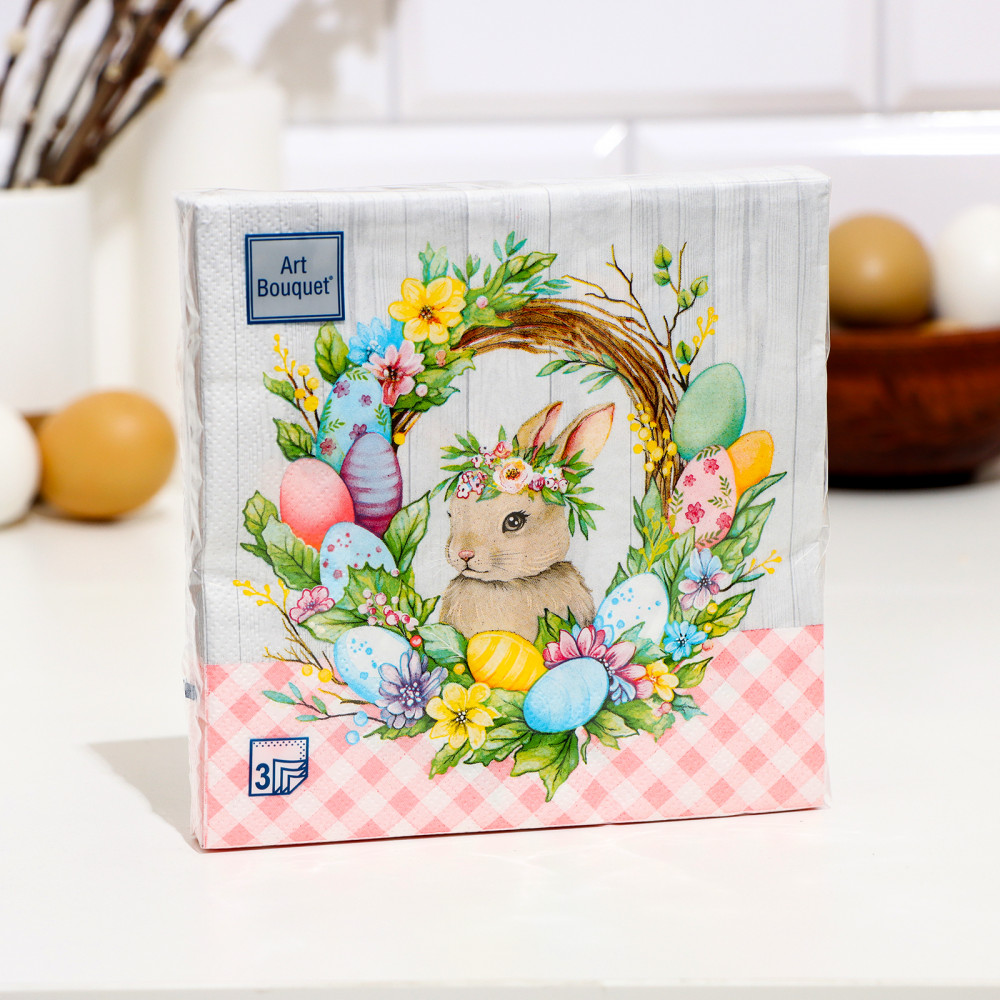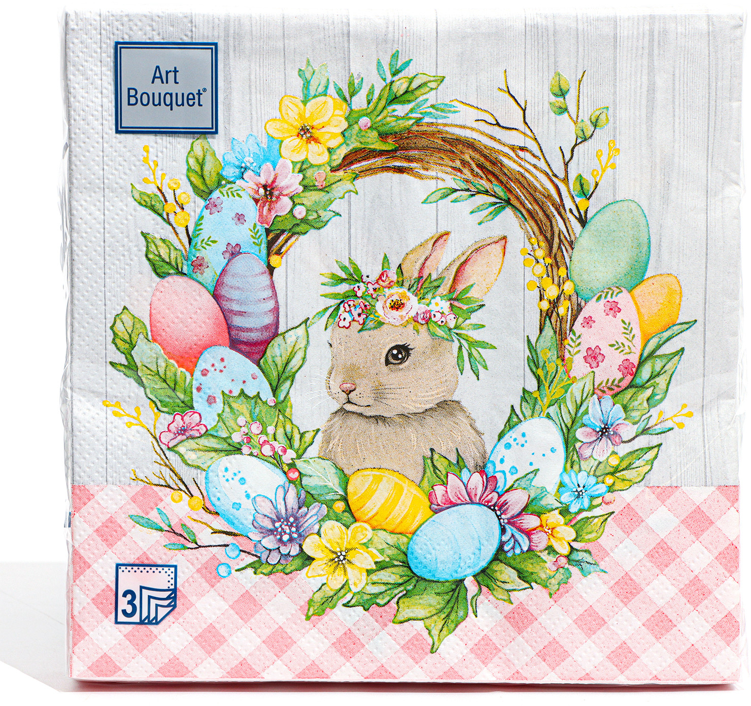 Art Bouquet Салфетки бумажные «Пасхальный венок с кроликом»В данный момент этот товар отсутствует в продаже. Возможно, у нас найдется аналогичный или похожий товар здесь. Если вы хотите, красиво и со вкусом украсть стол — салфетки с тематическим принтом обязательно займут на нём своё почётное место. Такие салфетки не только сослужат хорошую службу за трапезой, но и дополнят общую атмосферу праздника. Качественные трехслойные бумажные салфетки изготовлены из качественной целлюлозы. Салфетки станут отличным дополнением вашего праздничного стола. Яркие цвета салфеток украсят скатерть на праздничном столе. Салфетки можно использовать как по прямому назначению — для украшения стола и декора, так и для различных поделок: скрапбукинга, декупажа, коллажей. Салфетки на стол для сервировки обладают оптимальной впитываемостью и мягкостью. Бумажные салфетки незаменимы для пикника и праздничных мероприятий. Салфетки для стола отличаются необычайным качеством, прочностью и оригинальностью. |