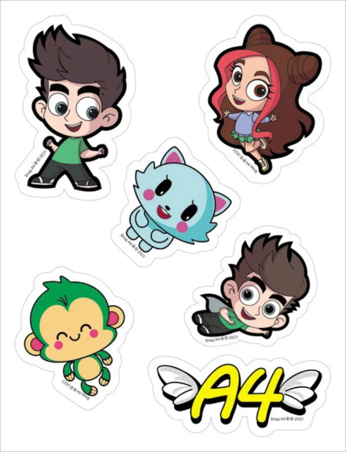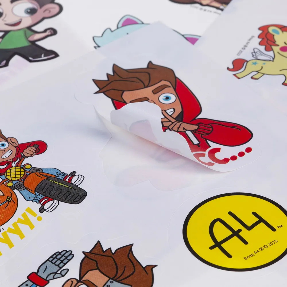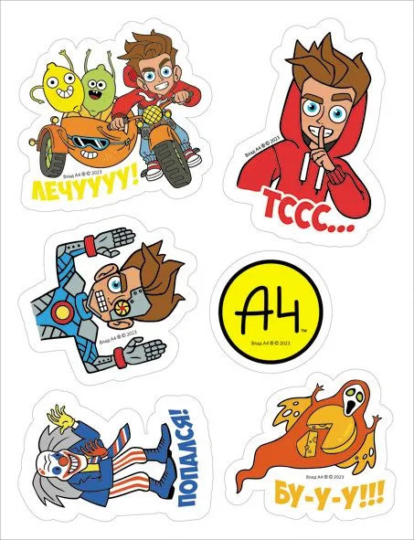 Это не просто бумажные наклейки, это настоящий мерчандайзинг от популярного блогера Влада А4. Каждая наклейка в наборе выполнена из качественной бумаги, что обеспечивает долговечность и яркость цветов. Благодаря своему модному дизайну, эти стикеры подойдут для любого ребенка, который увлекается канцелярией и творчеством.