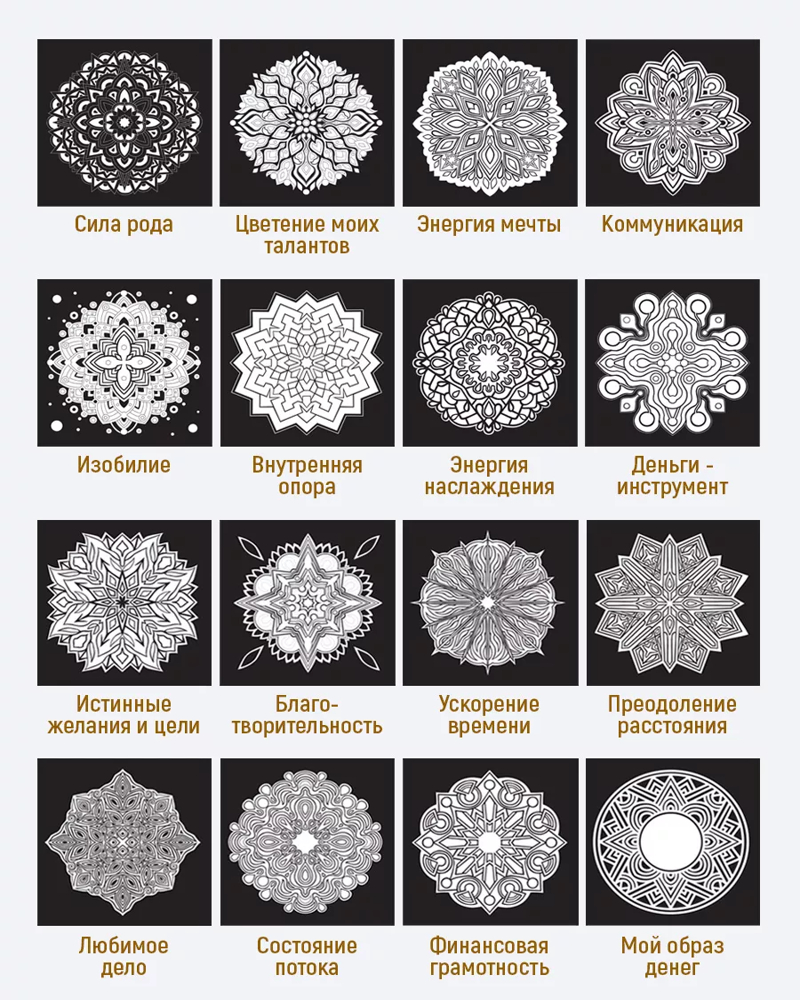 Мандалы с описанием содержания каждой мандалы