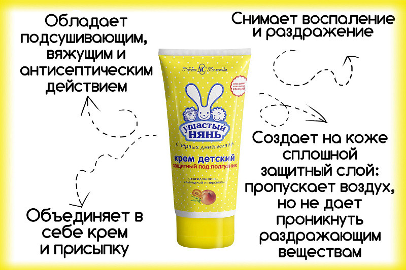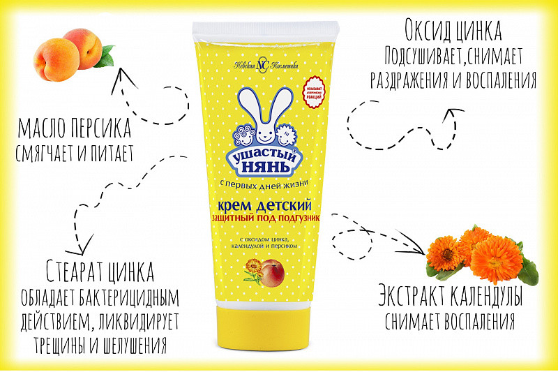 Ушастый нянь Крем детский защитный под подгузникВ данный момент этот товар отсутствует в продаже. Возможно, у нас найдется аналогичный или похожий товар здесь. Детский защитный крем под подгузник «Ушастый нянь» заботится о самой нежной коже младенца. Средство эффективно снимает раздражения и воспаления. Входящий в составе стеарат цинка, который обладает бактерицидным действием. Он ликвидирует трещины, потёртости и другие воспаления. Оксид цинка подсушивает, а масло персика смягчает и питает, сглаживает шершавость и устраняет шелушение. |