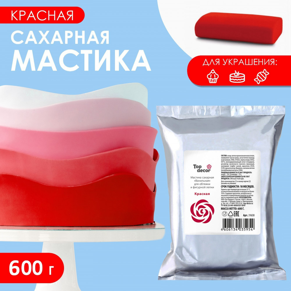 Топ декор Мастика сахарная «Ванильная», красная