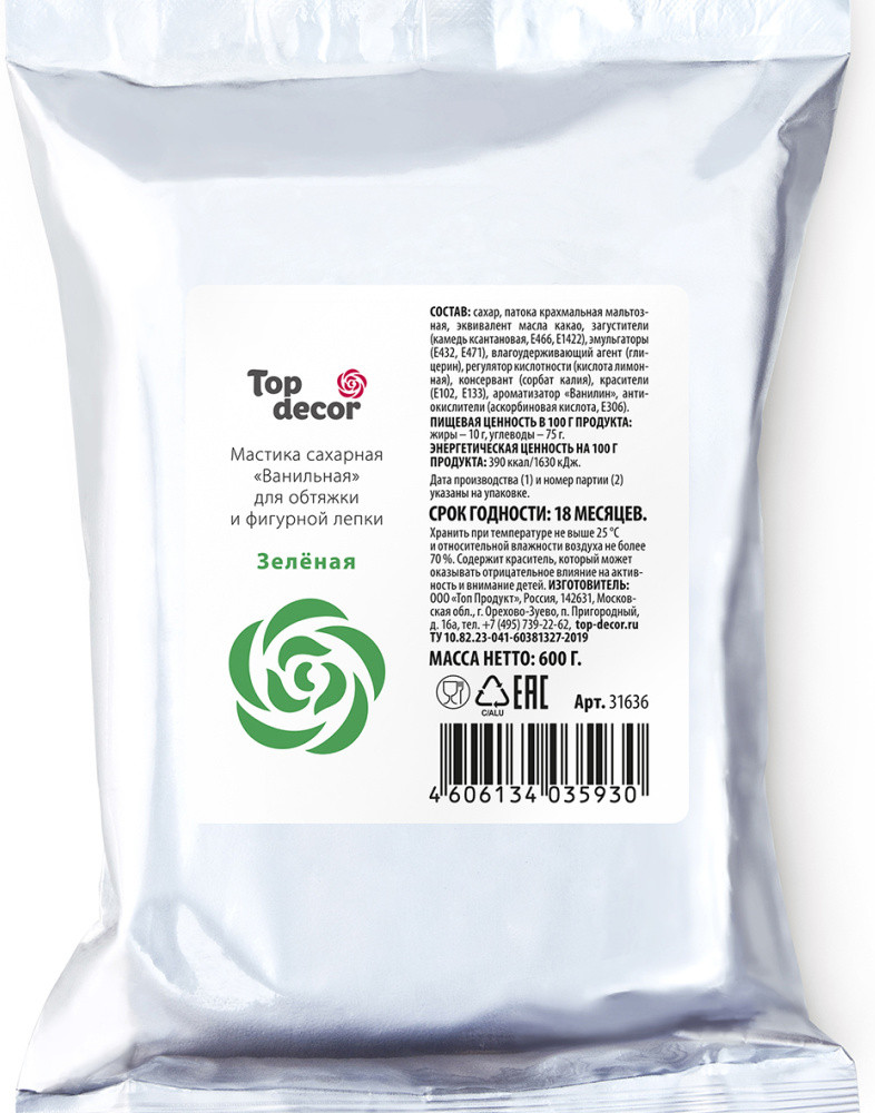 Способ применения: необходимое количество мастики предварительно размять на сухой, слегка подпыленной сахарной пудрой поверхности, до мягкой пластичной консистенции.