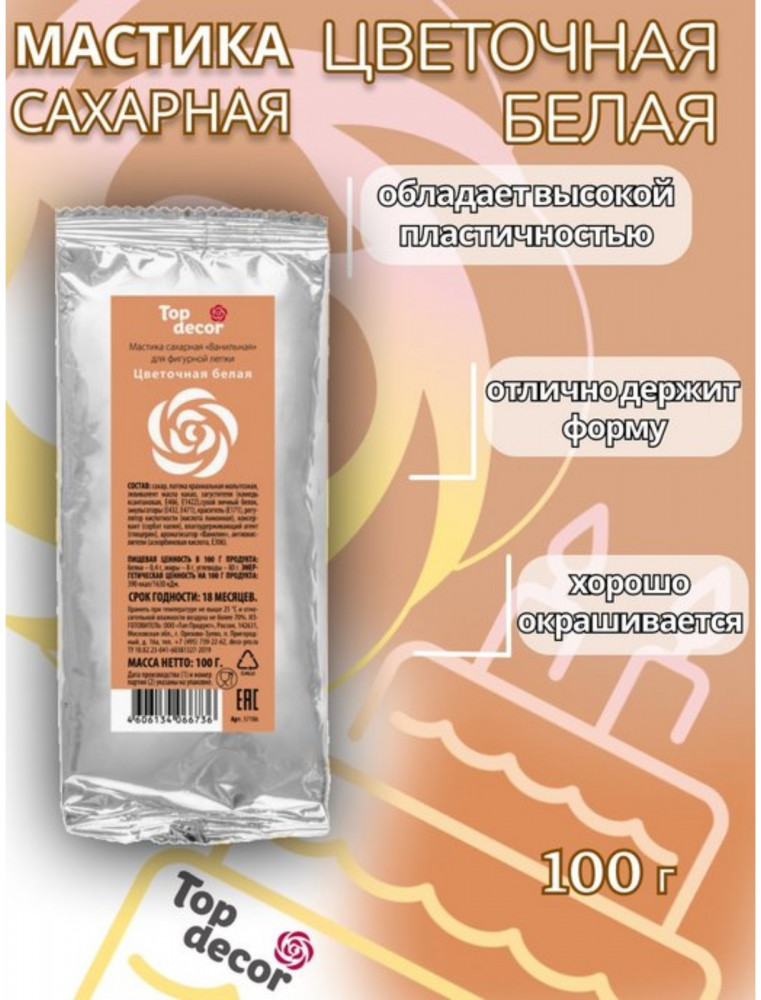 Топ декор Мастика сахарная «Ванильная», цветочный белый