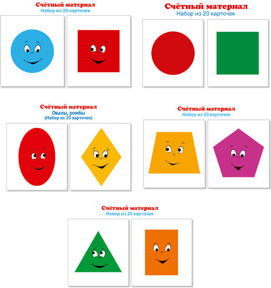 Набор счетного материала Геометрические фигуры. Набор из 5 видов по 20 карточек