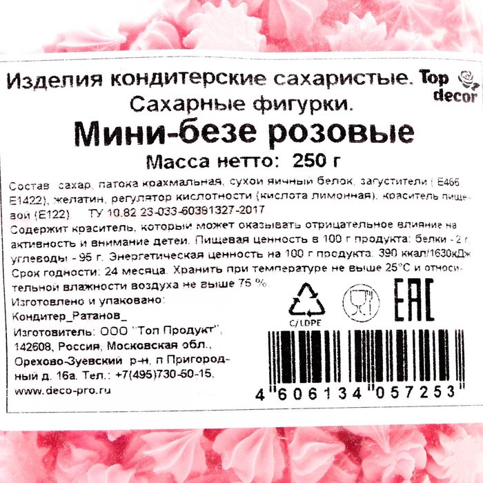 Топ декор Набор фигурок сахарных «Мини-безе», розовый