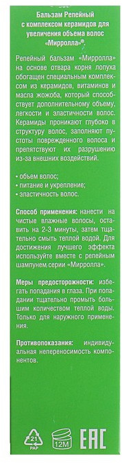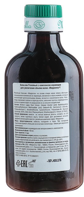 Mirrolla Бальзам для увеличения объема волос репейный с комплексом керамидов