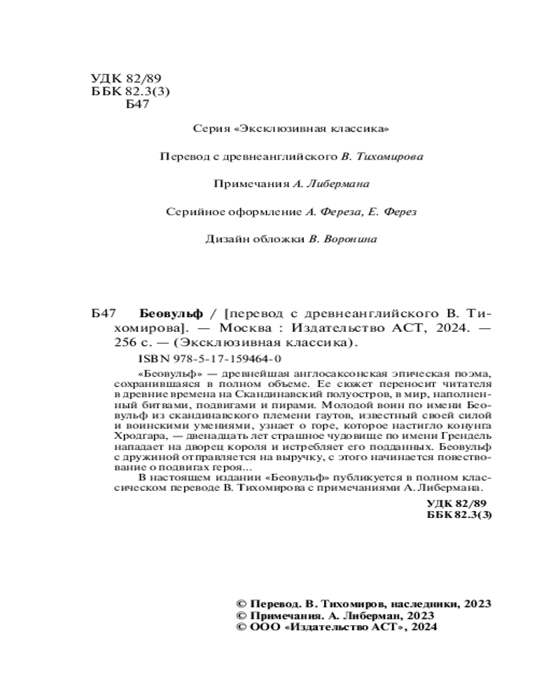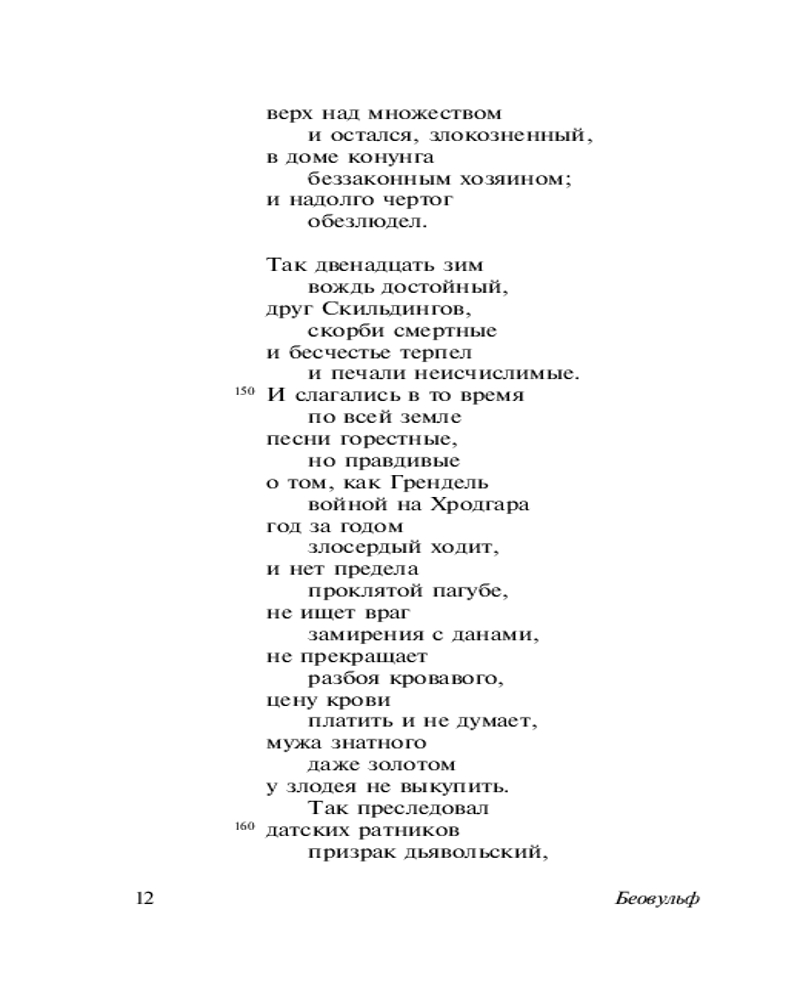 💳 Оплатить за товар можно при получении 🇰🇿 Есть бесплатная доставка по Казахстану от 1 дня 🎁 Копите бонусы с каждой покупки Серия: Эксклюзивная классика «Беовульф» — древнейшая англосаксонская эпическая поэма, сохранившаяся в полном объеме. Ее сюжет переносит читателя в древние времена на Скандинавский полуостров, в мир, наполненный битвами, подвигами и пирами. Молодой воин по имени Беовульф из скандинавского племени гаутов, известный своей силой и воинскими умениями, узнает о горе, которое настигло конунга Хродгара, — двенадцать лет страшное чудовище по имени Грендель нападает на дворец короля и истребляет его подданных. Беовульф с дружиной отправляется на выручку, с этого начинается повествование о подвигах героя... В настоящем издании «Беовульф» публикуется в полном классическом переводе В. Тихомирова с примечаниями А. Либермана. |