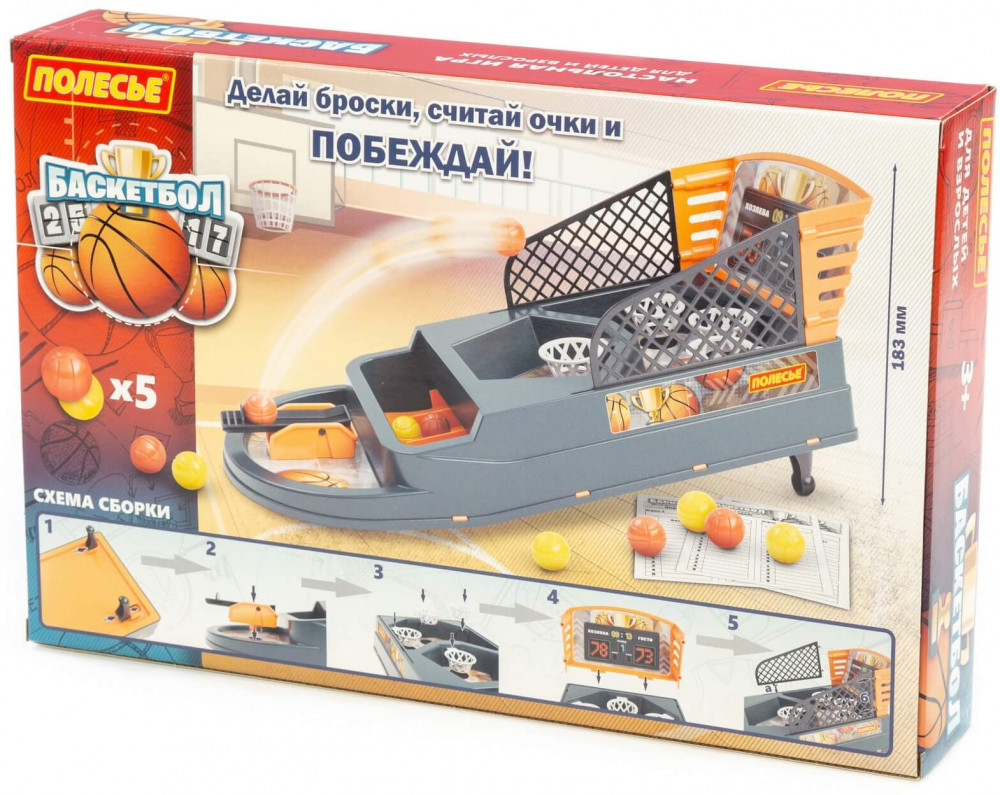 Полесье Игра настольная «Баскетбол»В данный момент этот товар отсутствует в продаже. Возможно, у нас найдется аналогичный или похожий товар здесь. Игра настольная «Баскетбол» № 2 предназначена для весёлого времяпрепровождения детей от 3 лет, а также взрослых независимо от возраста! Внутри коробки находятся детали конструкции, шарики, анкеты и комплект наклеек. Схема сборки деталей изображена на коробке. Игра рассчитана на 2 игроков. Каждый игрок по очереди запускает шары и попадает в определенную корзину. Возле каждой корзины указана цифра — это количество баллов, которое нужно внести в анкету игрока. Делай броски, считай очки и побеждай! |