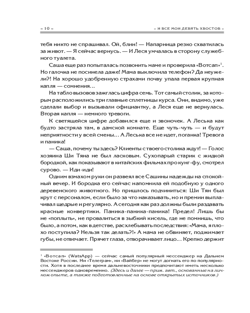 💳 Оплатить за товар можно при получении 🇰🇿 Есть бесплатная доставка по Казахстану от 1 дня 🎁 Копите бонусы с каждой покупки Серия: Магия Восходящего Солнца Саша Кислицкая — обычная бедная студентка, мечтающая о поездке в Китай. Она снимает комнатушку и подрабатывает в китайском ресторанчике. Возможно, ее мечты о путешествии так и остались бы мечтами, если бы не случайное знакомство с... преподавателем китайского вуза Чжаном Ли! Однако все оказывается не так просто. Странный щенок, которого Саша с Чжаном Ли спасают от диких собак, отращивает хвост, подозрительно похожий на лисий. А когда зверь таинственно пропадает, вокруг Саши начинают твориться необъяснимые вещи. И ключом к происходящему может служить только одно: лисицы-оборотни из китайских легенд действительно существуют... |
