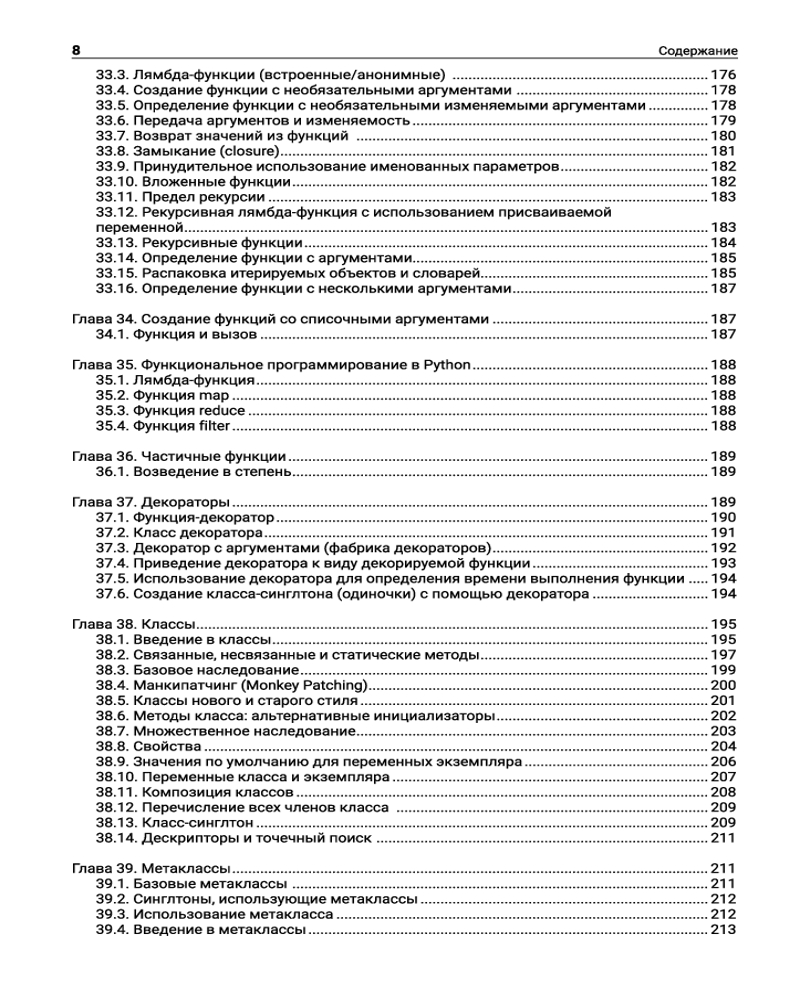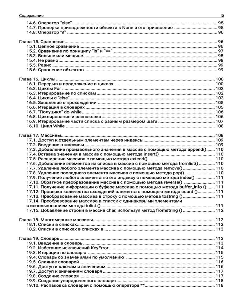 Опытные Python-программисты найдут в книге множество примеров кода с подробными комментариями, что поможет им усовершенствовать свои навыки и достичь новых высот в отрасли. Однако данное издание будет полезно и начинающим специалистам с минимальным опытом и уровнем знаний, так как содержит исчерпывающее объяснение важнейших концепций Python с примерами, которые позволят избежать погружения в сухую теорию и помогут быстро повысить уровень своих компетенций.